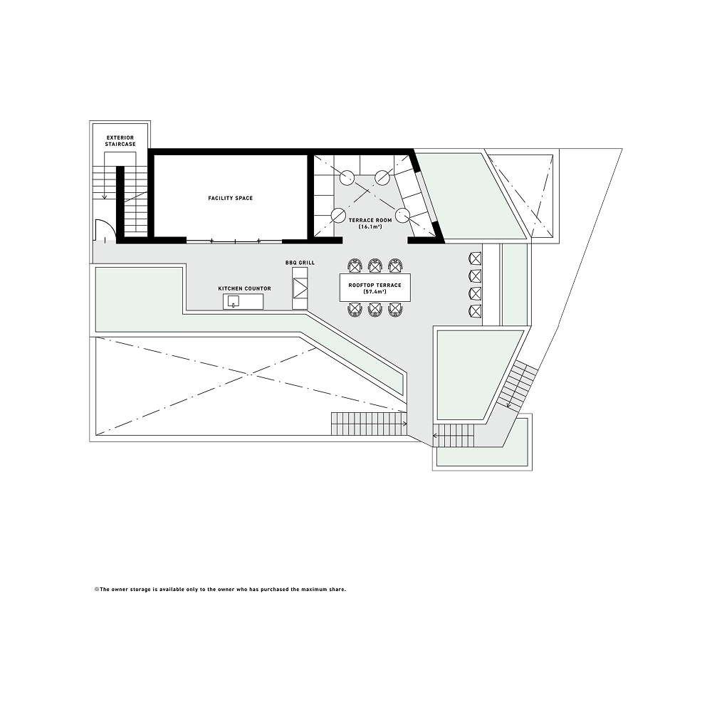 福岡空港から車で約15分、天神まで自転車で10分という利便性の高いロケーションに、8つの異なるコンセプトをもつハウス(+PENTHOUSE、+CHEF、+DESK、+DOMA、+RETREAT、+BAR、+ATELIER、+SOUND)が並ぶ。すべての空間が100㎡を超えるゆとりを備え、屋外テラスやプライベートサウナなどを通して、都市の中でも開放感を感じられる設計となっている。1階には宿泊者専用のラウンジ「+BLANK」を併設し、街と人、旅と暮らしをつなぐ新しい拠点として機能する。