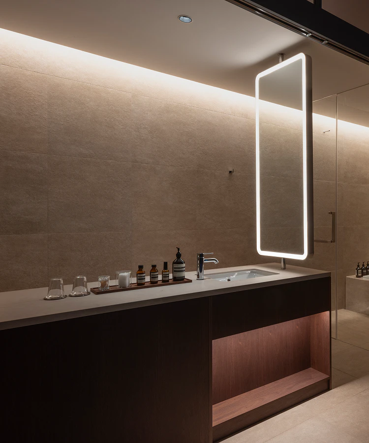ゲストが感じる快適性を追求することこそが、余白を豊かにする鍵だと考え、空調や自動制御の設計において設計者・施工者と幾度も検証を重ねています。温湿度の繊細なコントロールと、それを支える自動制御システム(KNX)の最適化によって、目に見えない心地よさを実現。