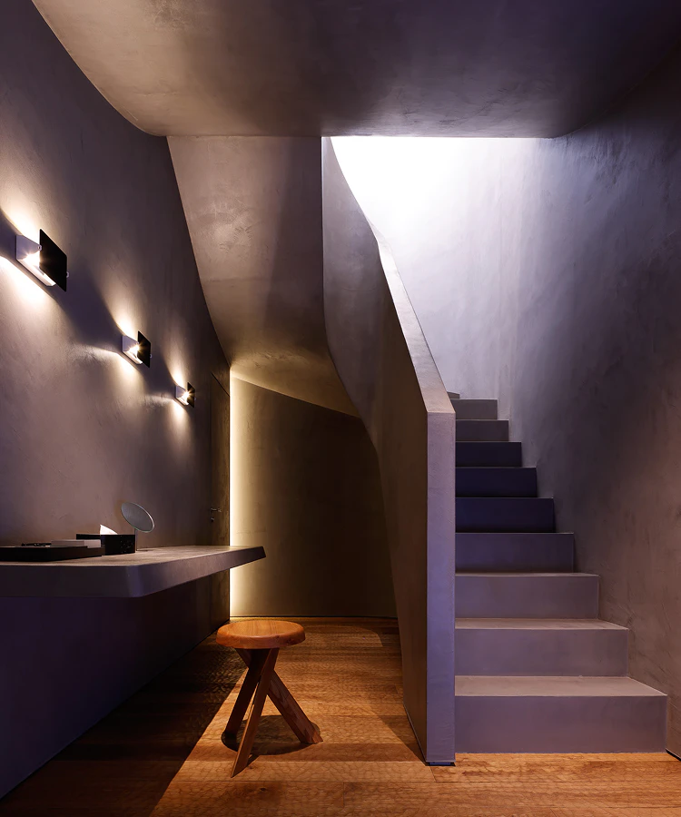 東京都港区広尾に位置する、1日1組限定のラグジュアリーな宿泊・ラウンジ空間である「NOT A HOTEL CLUB HOUSE HIROO」。建築およびインテリアは片山正通氏率いるWonderwall®が設計を担当。杉板型枠打ちコンクリートによるモノリス的な質感と、東洋と西洋の感性を融合させたデザインが特徴である。