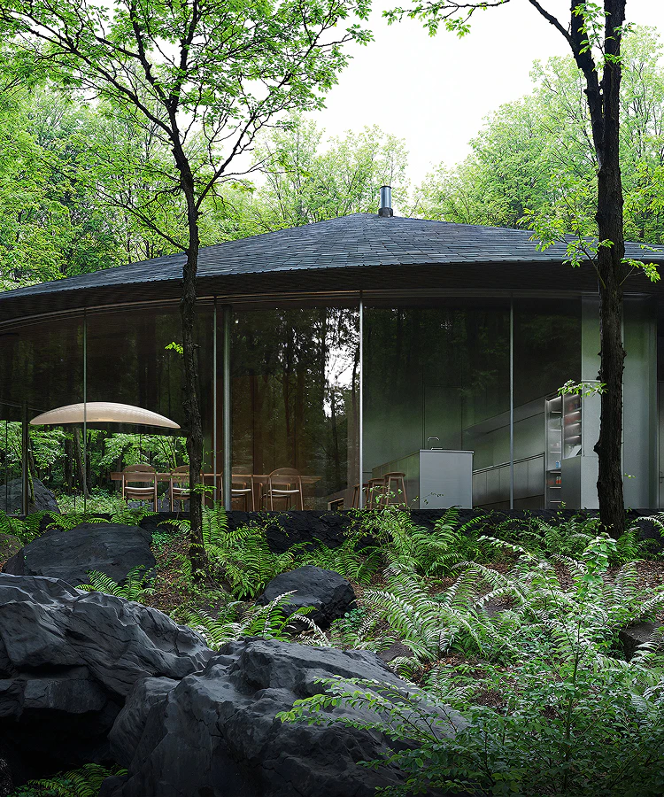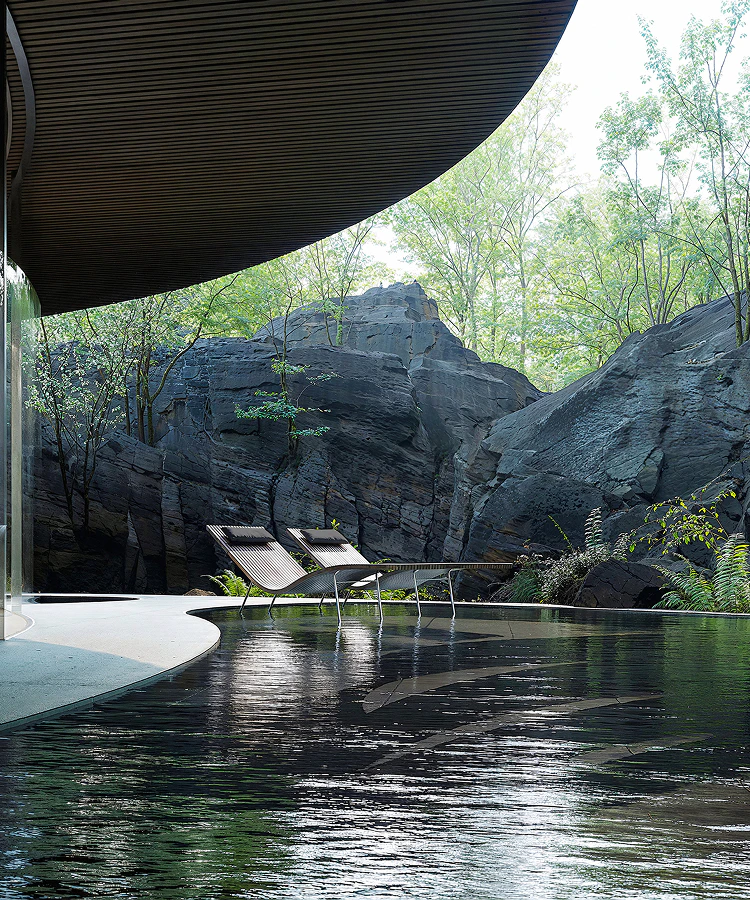 岩や樹木、地形の起伏をそのまま生かしながら、自然と一体となるよう計画されたこの建築は、訪れる人が自然の中に身を置きながら、静けさと豊かさを感じ取ることのできる、まさに“自然の内にある暮らし”を体現するNOT A HOTELである。