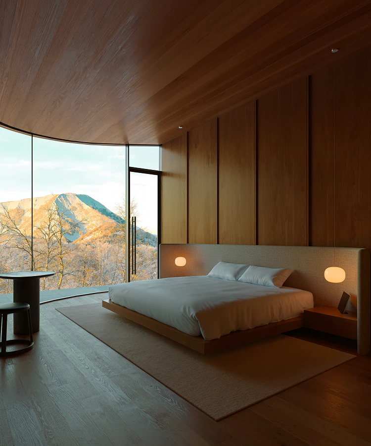 国際的に活躍するノルウェーの建築デザイン事務所Snøhetta(スノヘッタ)が手がける「NOT A HOTEL RUSUTSU」は、北海道・ルスツリゾートのスキー場山頂に位置するプロジェクトである。眼前には“蝦夷富士”と称される羊蹄山が広がり、ヴィラから直接スキーアウトできる唯一無二の体験を実現している。 デザインの根源にあるのは、「ZEN(禅)」と「SUMMIT(頂)」という二つの思想。シンプルであることと高みを目指すこと、内なる静けさと成し遂げようとする意志という、相反する力の間にある調和を建築として体現している。断面的な空間の変化と開口部から望む雄大な風景が、歩くたびに感覚を研ぎ澄まし、自然と一体になる時間を生み出す。