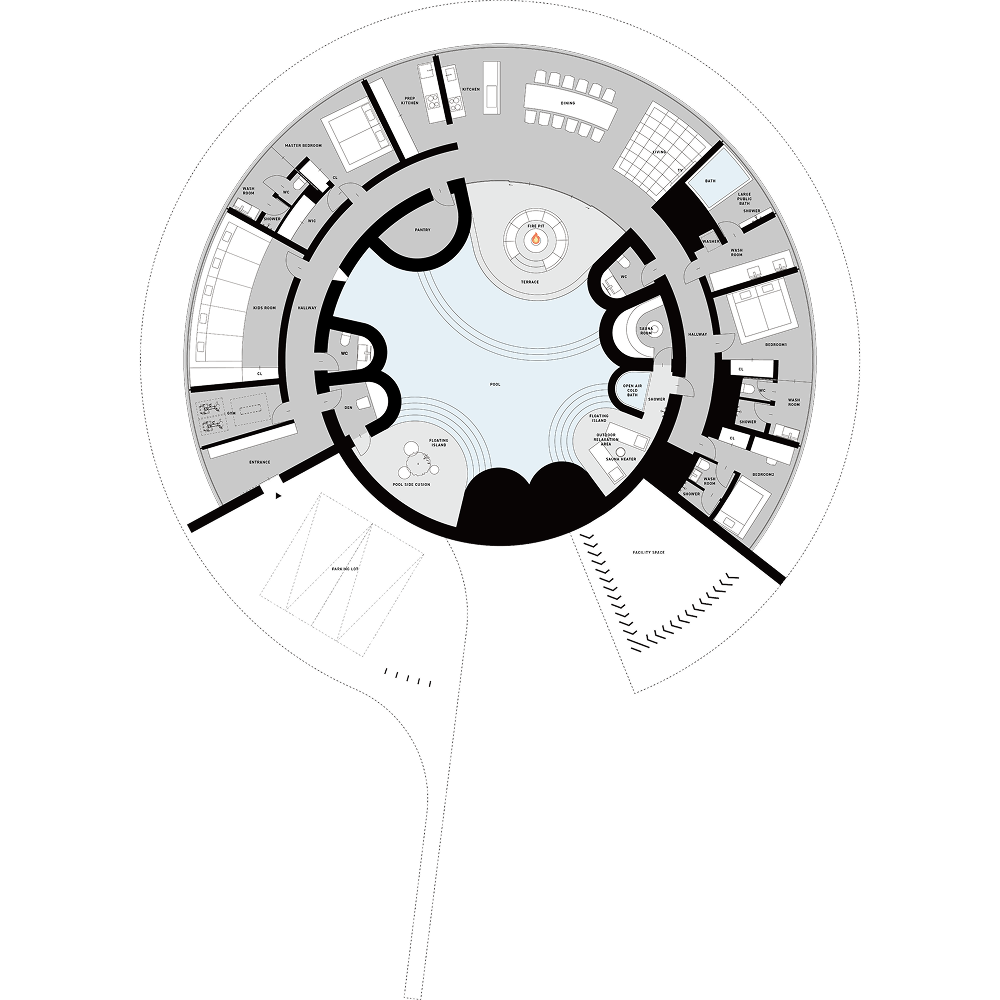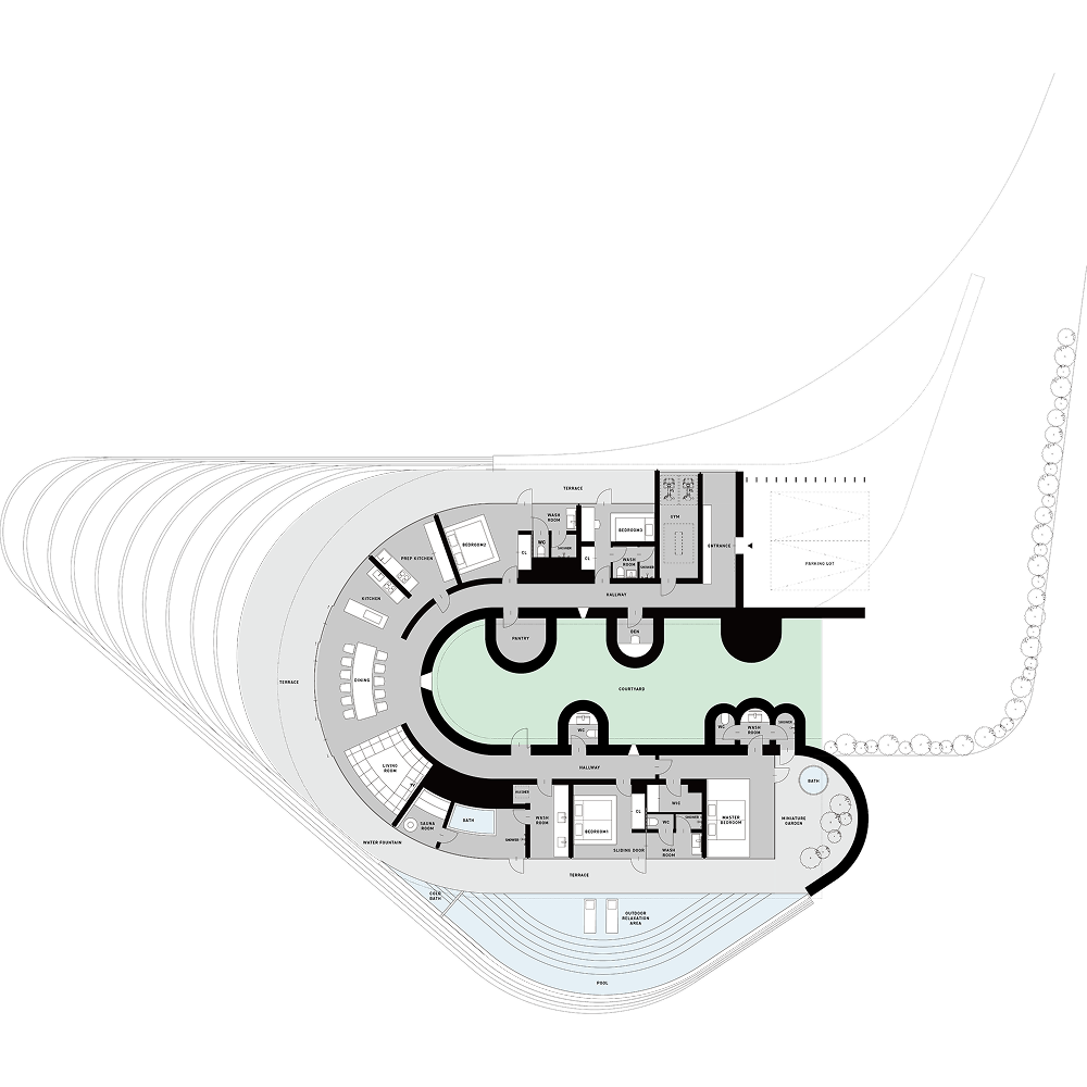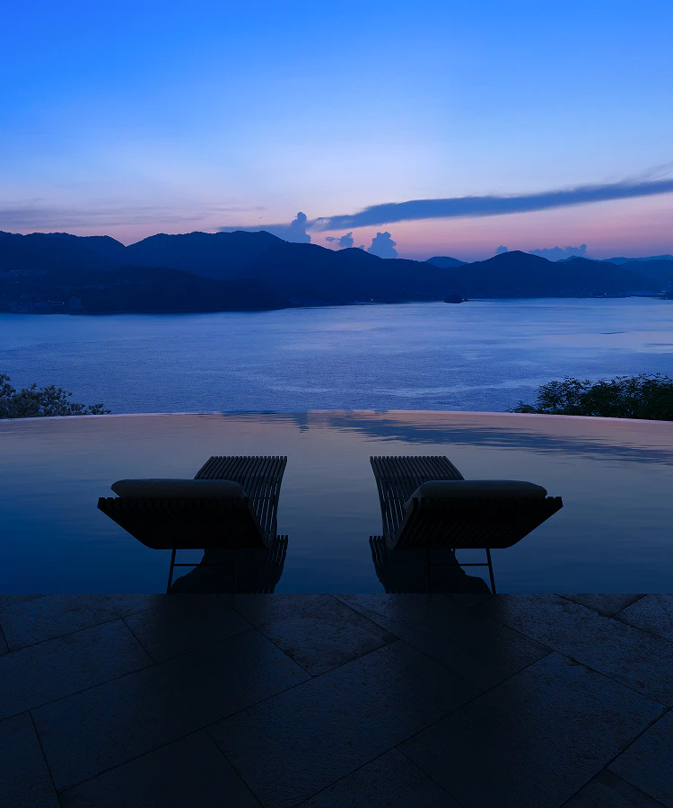 穏やかな瀬戸内海を望むロケーションに、海と空が溶け合うような連続性を持つ建築群が広がり、アートや建築、食といった文化が交差する新たなリトリートとして構想された。自分だけの半島で過ごすような体験を通して、自然と人、暮らしと旅の境界を超える“瀬戸内の新しい風景”を描き出す拠点である。