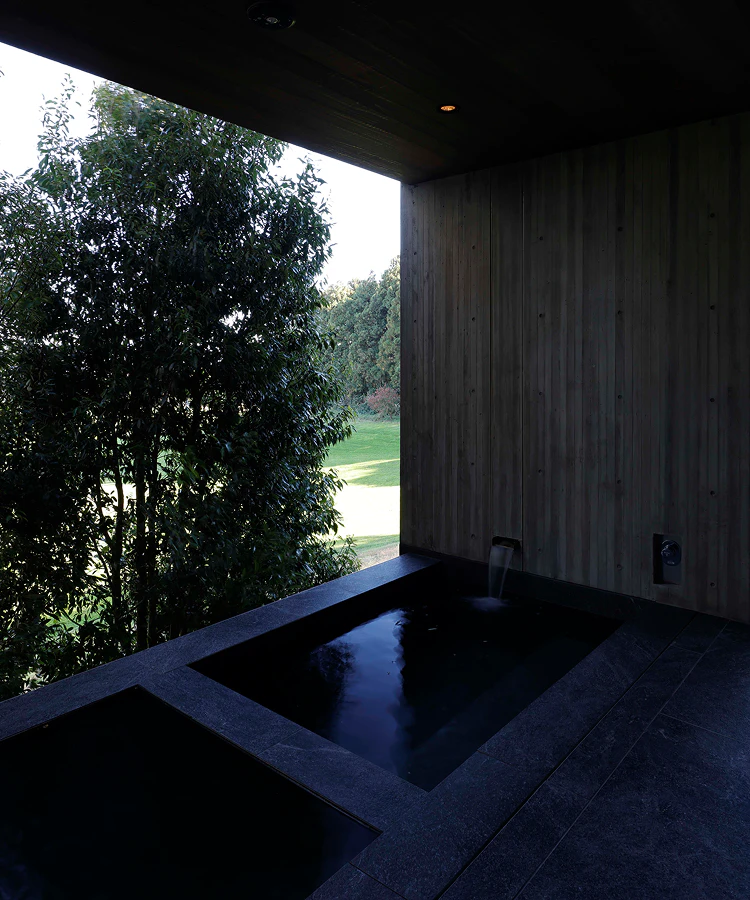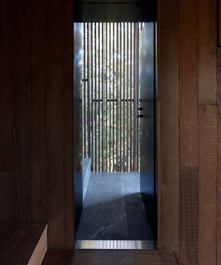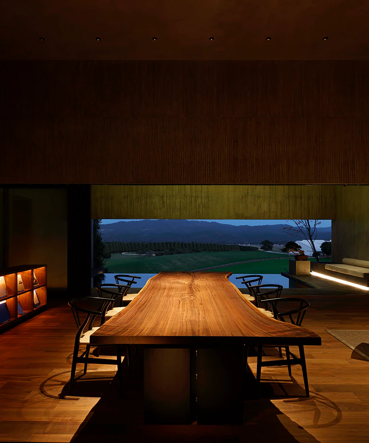 一方で、母屋に戻ると暖炉やサウナが迎えてくれ、張りつめた時間からふっと解き放たれる。集中と安らぎ。その行き来こそが、この建築の魅力であり、「間に生まれるラグジュアリー」というSUPPOSE DESIGN OFFICEの思想を最も体現していると感じています。